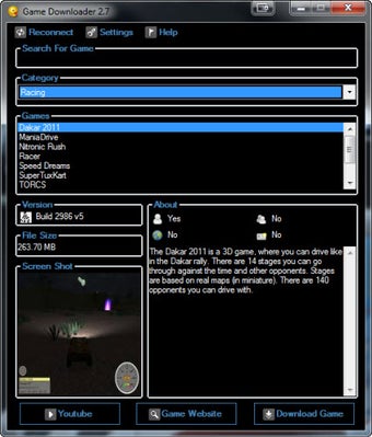 Per scaricare il gioco con Game Downloader basta premere il pulsante Download Game che trovi in basso a destra. Attraverso i due pulsanti sulla sinistra accedi al sito web dell'autore del gioco e ai video di questo presenti su YouTube.